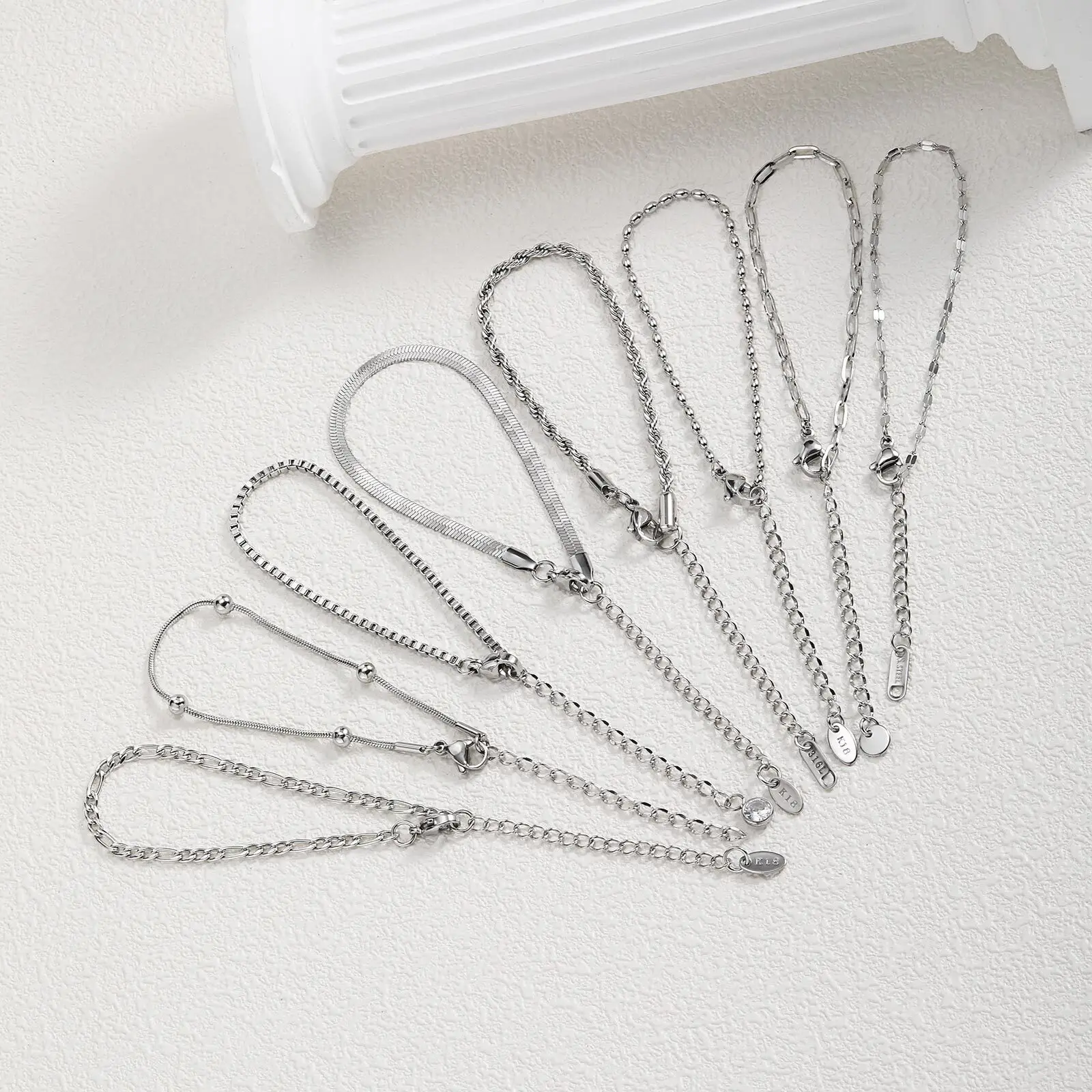 الفولاذ المقاوم للصدأ، مطلي بالذهب، مطلي بالفضة، مقاوم للماء، صديق للبيئة، لا يسبب الحساسية/لا يبهت أبدًا، خالي من الرصاص، خالي من النيكل، ولا يسبب الحساسية،