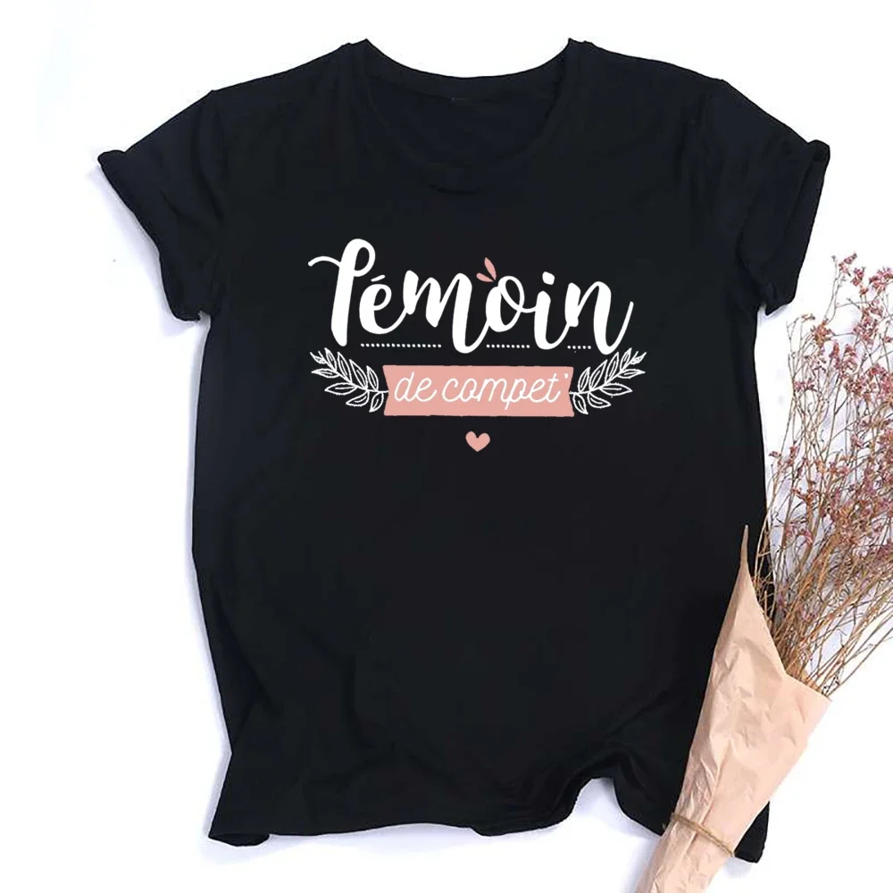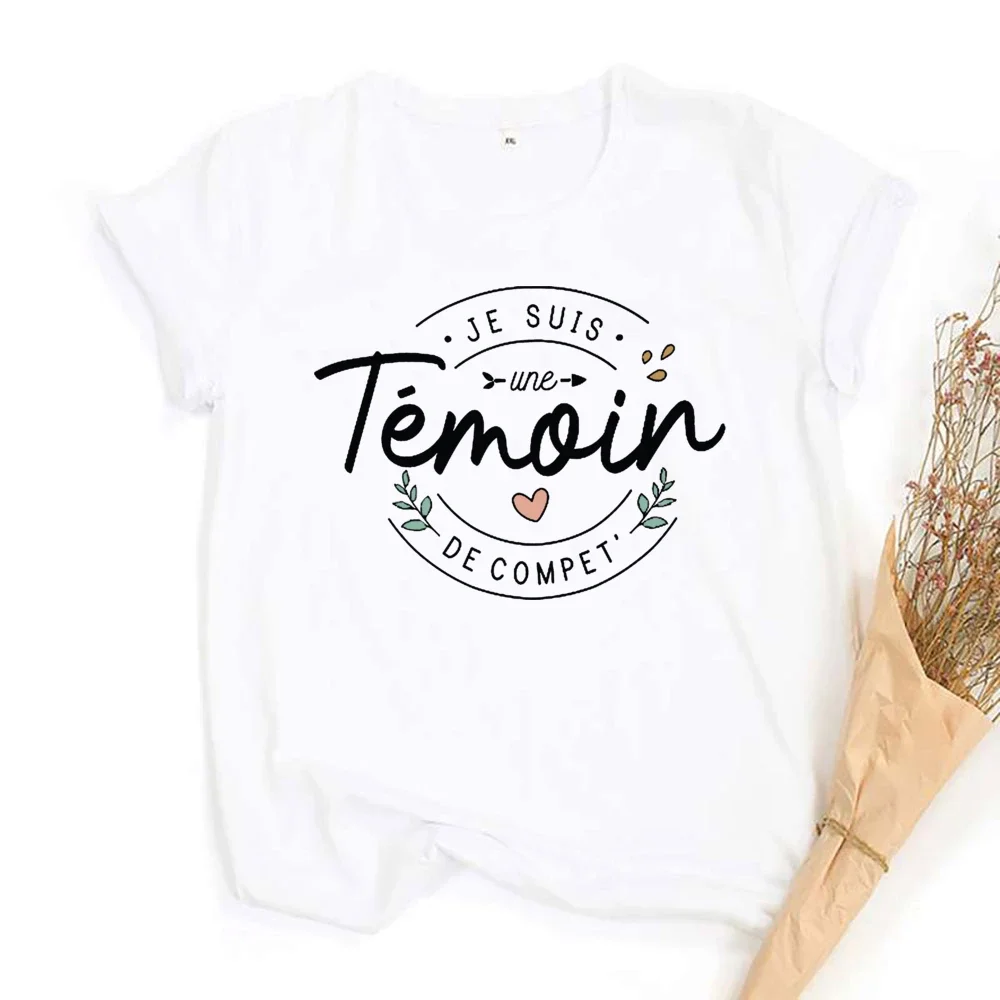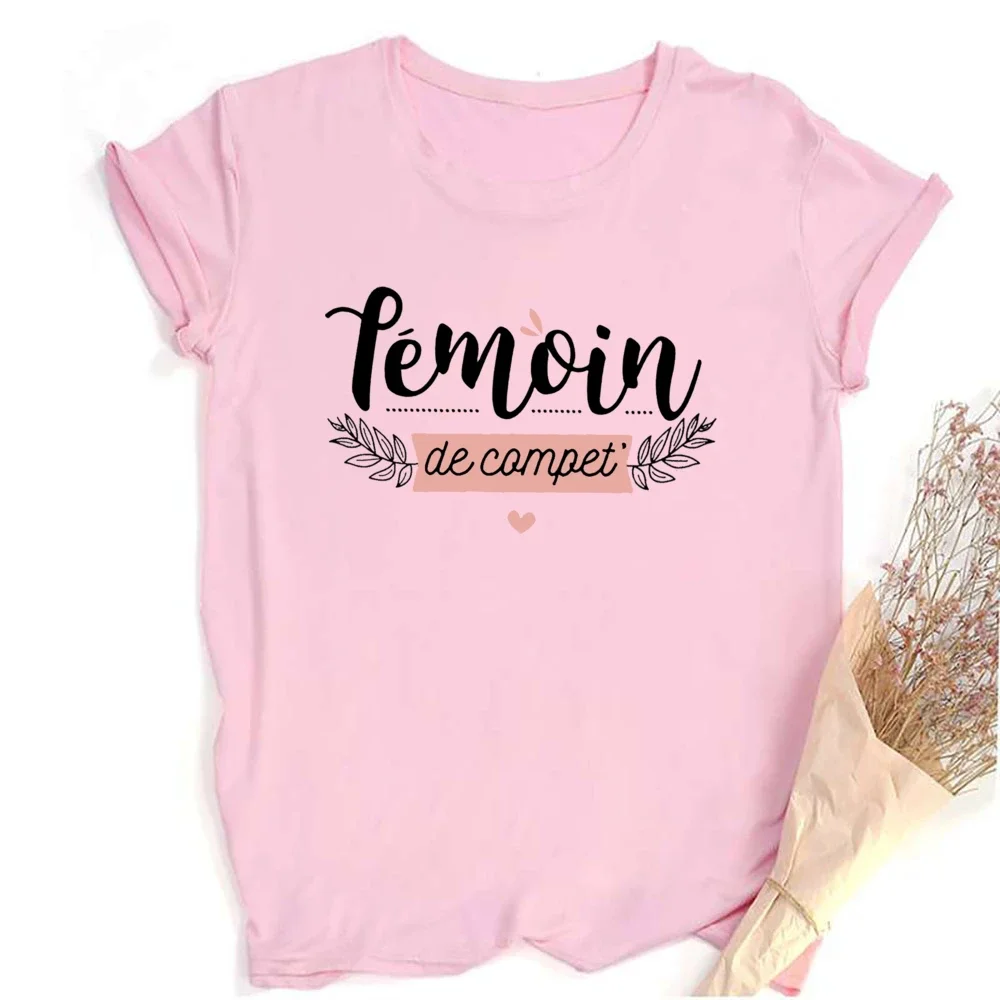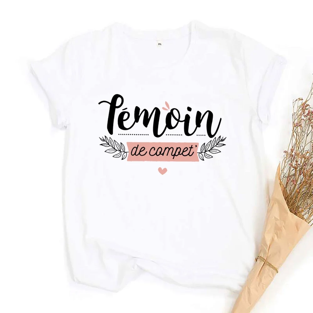 تيموين-تي شيرتة مطبوعة فرنسية لحفلة العزوبية ، زي جماعي ، ملابس زفاف ، تيشيرتة وصيفة الشرف ، قمة دش الزفاف