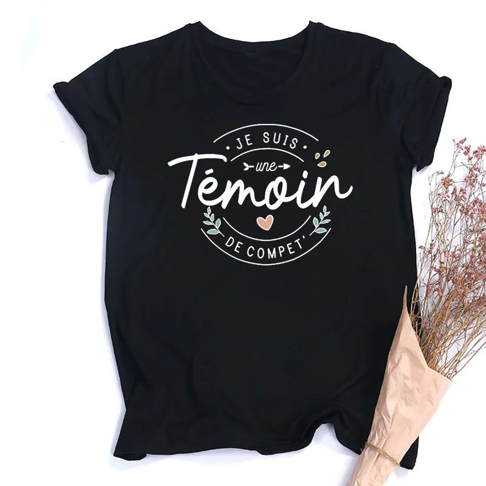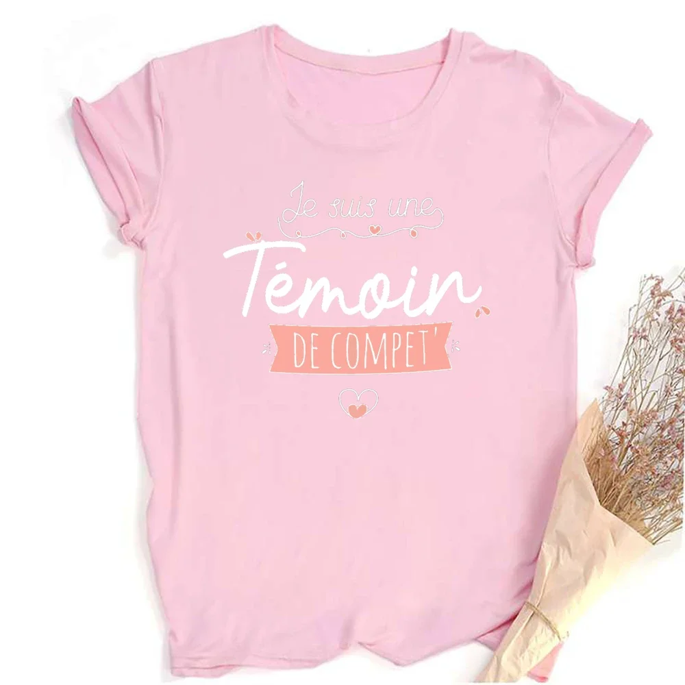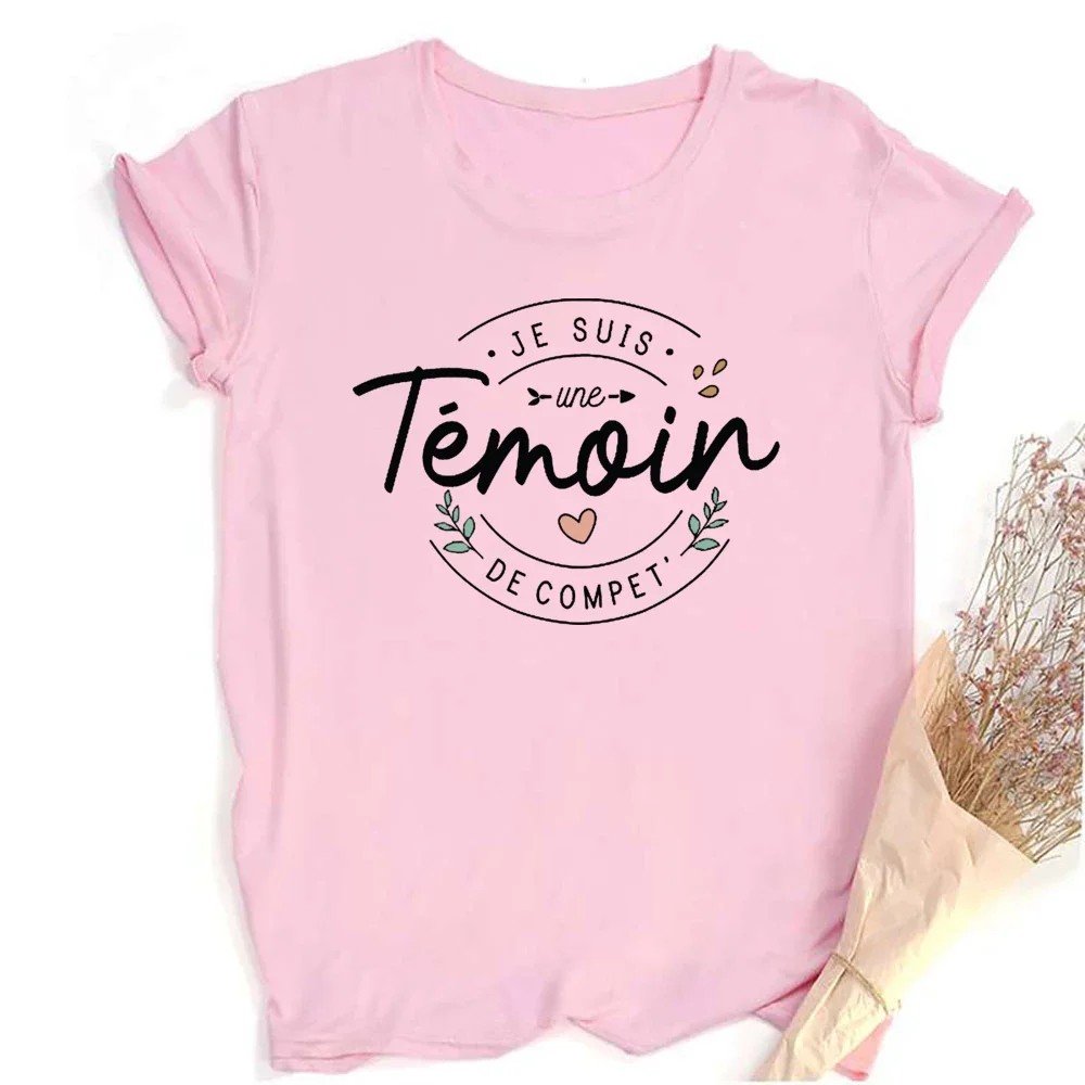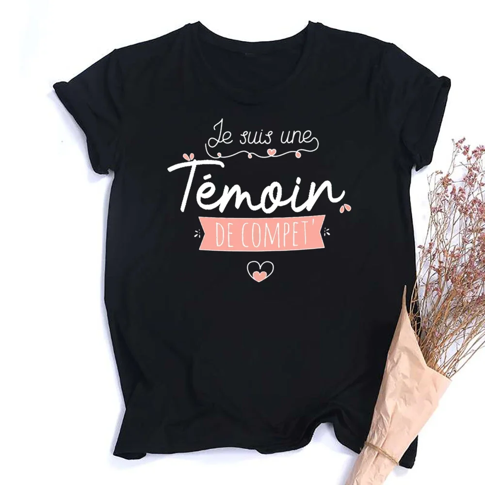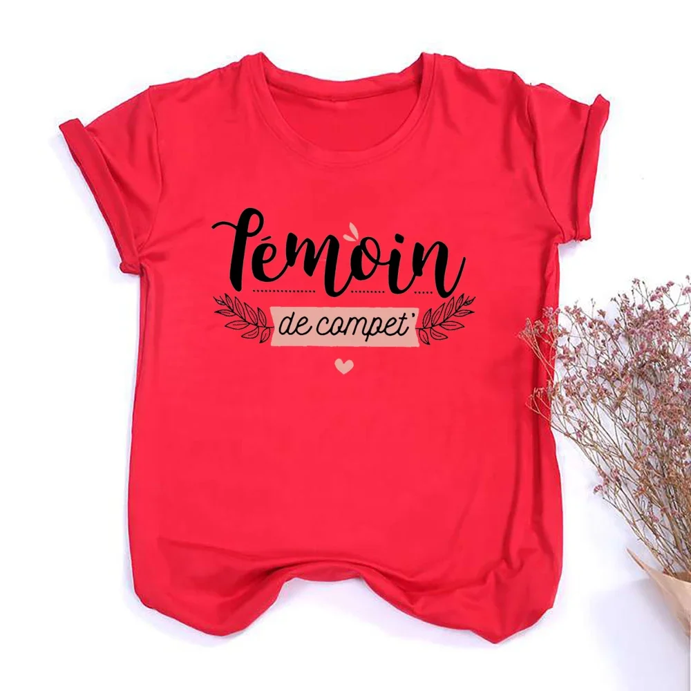 تيموين-تي شيرتة مطبوعة فرنسية لحفلة العزوبية ، زي جماعي ، ملابس زفاف ، تيشيرتة وصيفة الشرف ، قمة دش الزفاف