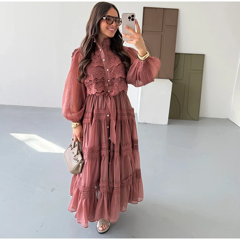 بفضل تصميمه الفضفاض وطوله حتى الكاحل، يوفر هذا الفستان مظهرًا مريحًا وأنيقًا.