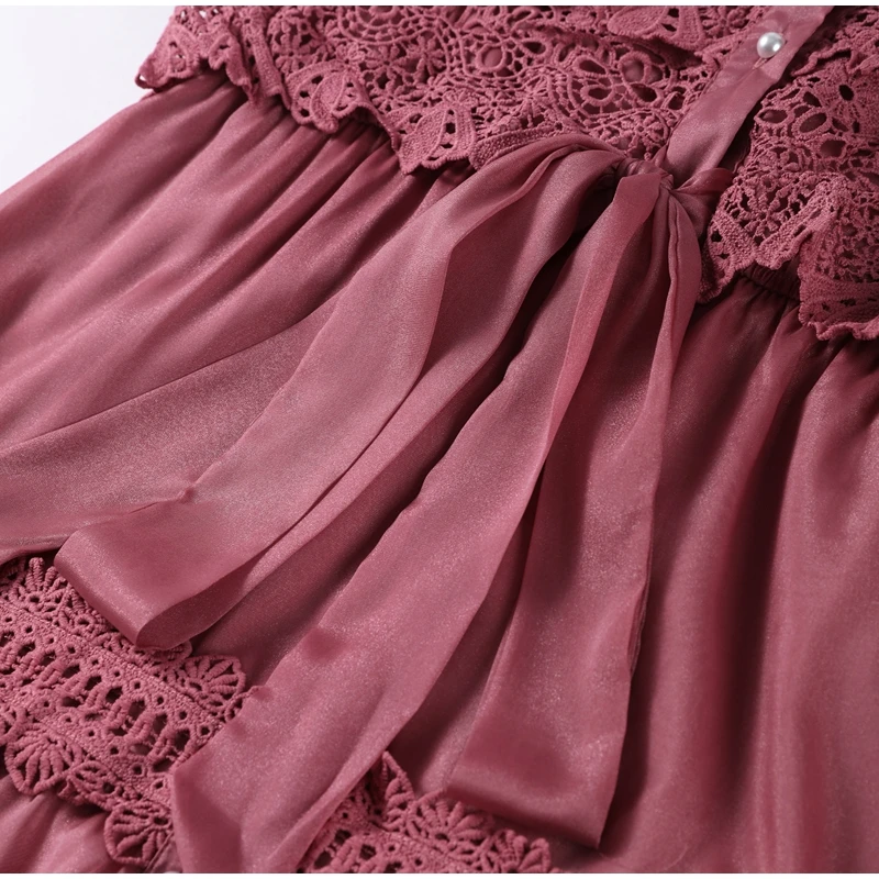 يتميز هذا الفستان برباط خلفي فريد وتفاصيل لؤلؤية، مما يضيف لمسة من الأناقة إلى أي ملابس.