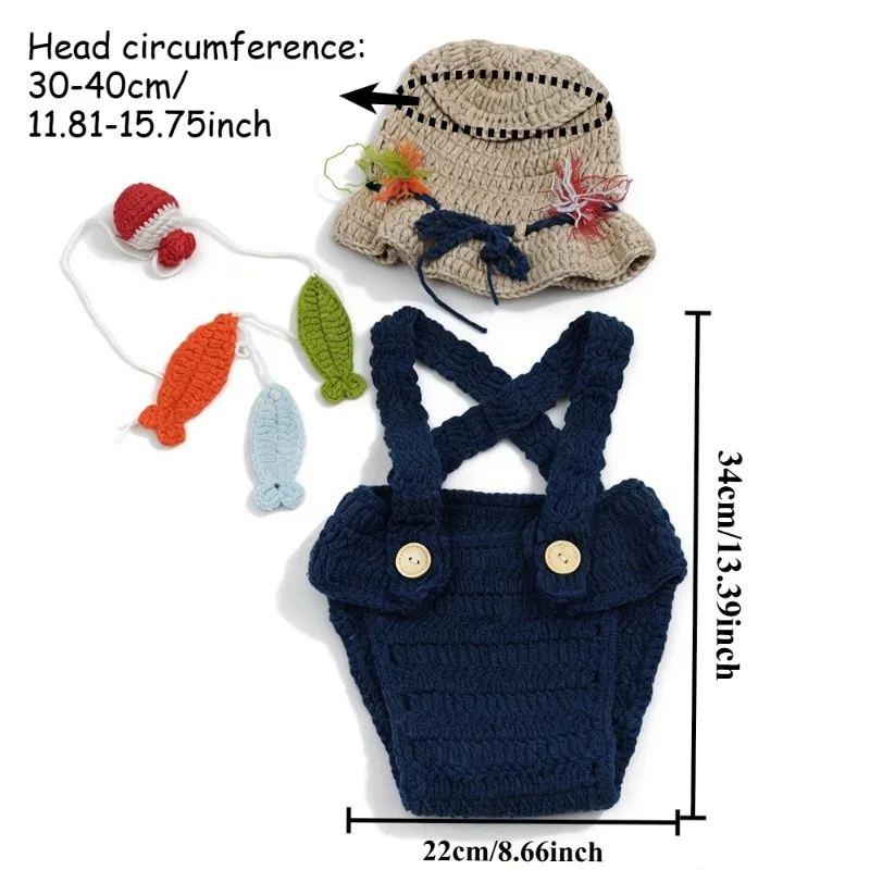 مجموعة واحدة من أدوات تصوير حديثي الولادة (قبعة + شورت بحمالات + خطاف صيد)