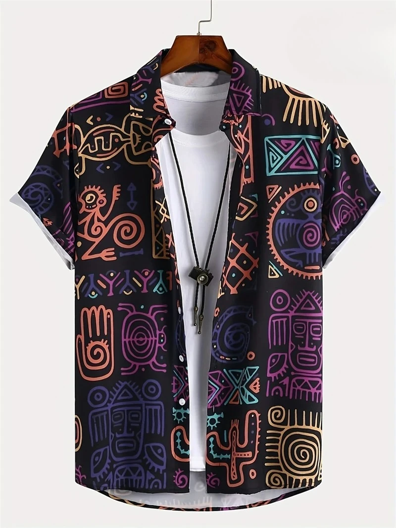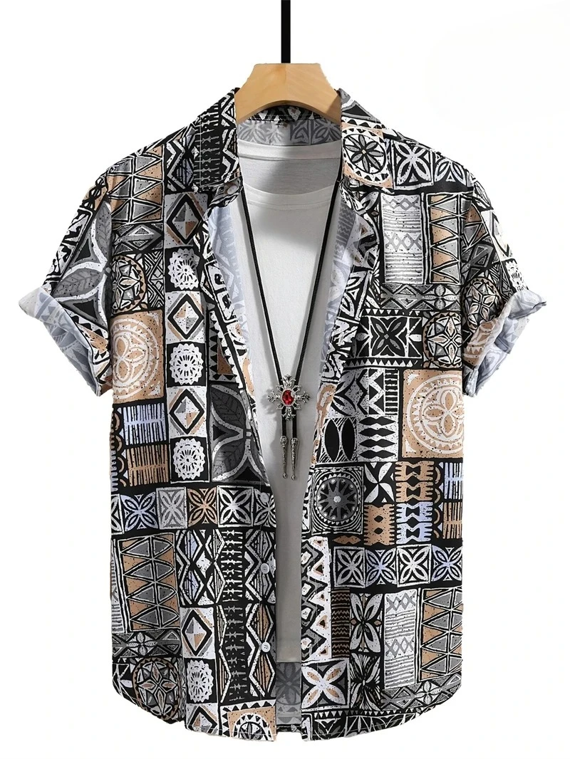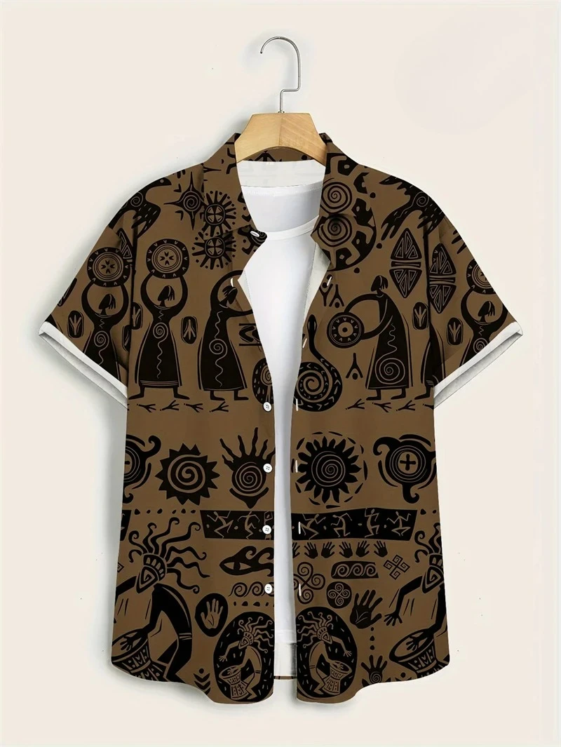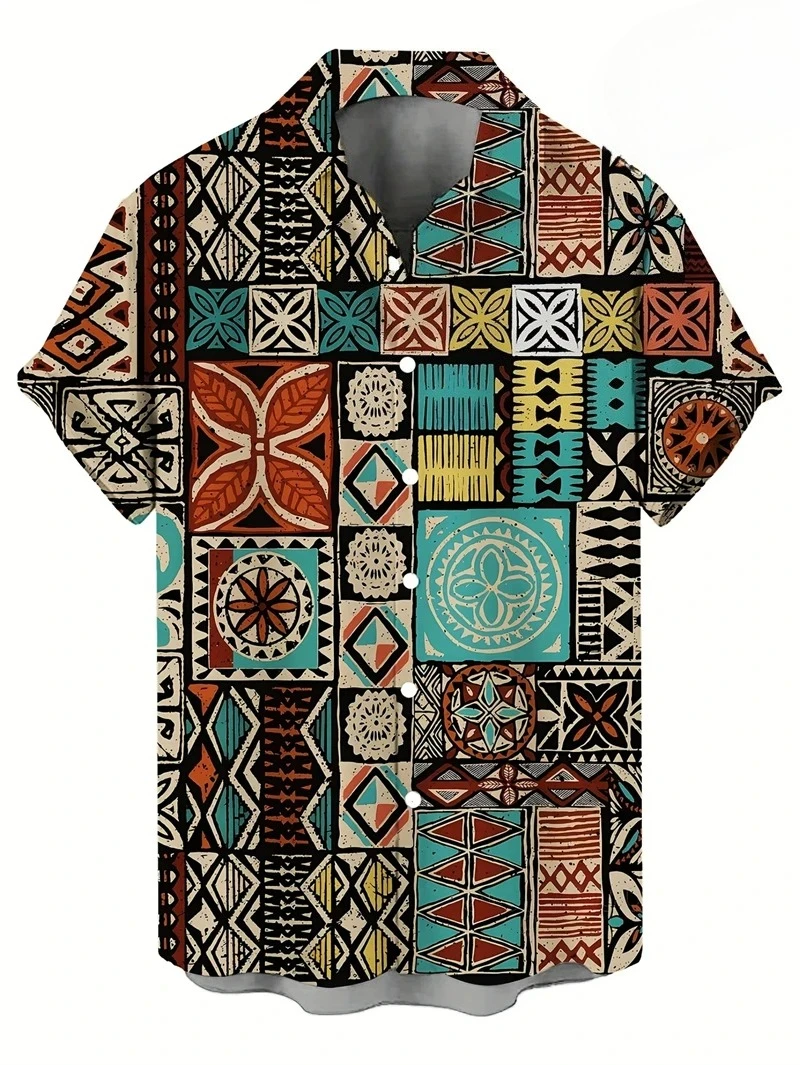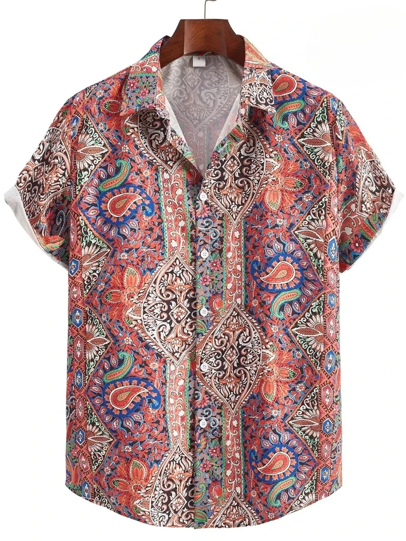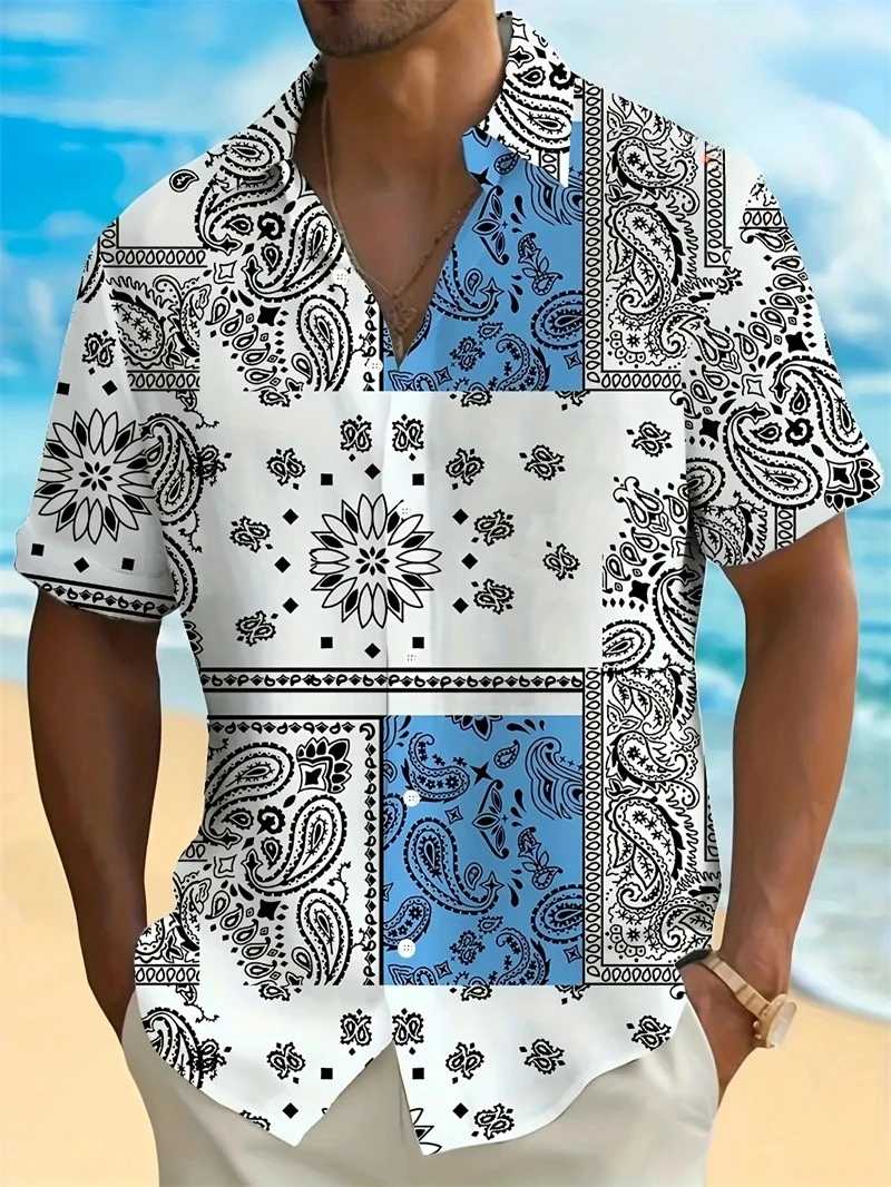 هاواي قمصان للرجال ثلاثية الأبعاد بيزلي الجرافيك قصيرة الأكمام تي شيرت عادية التلبيب أزرار الذكور بلايز الصيف المتضخم البوهيمي رجل تيز